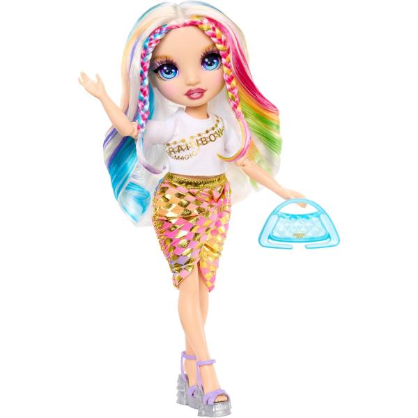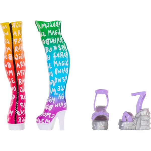 Rozšiřte svou fantazii s novým duhovým šatníkem od Amayi. Dárková sada „všechno v jednom“ obsahuje exkluzivní panenku s duhovými vlasy a botami, další módní doplňky zavěšené na věšáku na oblečení, vícevrstvé police, kabelky a boty. Děti se při oblékání své oblíbené panenky skvěle zabaví.Herní sada Duhový šatník. Obsahuje exkluzivní nezbytnou panenku, věšák na oblečení, věšáky, oblečení, vícevrstvé police, boty a kabelky.EXKLUZIVNÍ PANENKA. Amaya je od hlavy po paty oblečená ve své typické DUZE. Její krásné, dlouhé, vyčesané vlasy jsou poseté duhovými pruhy.Extra módní doplněk. Součástí balení jsou 3 roztomilé topy, 2 sukně a 1 kalhoty, které můžete kombinovat.DOKONALÉ DOPLŇKY. Obsahuje 3 páry bot a 2 tašky na vytvoření množství různých outfitů.Dárkové balení všechno v jednom. Balení je perfektním dárkem: hra a exkluzivní panenka.Obsah balení: Exkluzivní módní panenka s možností polohování, duhová nástěnná skříň, věšák na kabáty, 4 vysoké stojany na boty, 6 módních doplňků, 3 páry bot, 2 kabelky, 4 věšáky, 1 hřebenHRAJ SE S JEJÍMI PŘÍTELKYNNAMI: Rainbow Shimmers Iris, Bella, Skyler a Violet