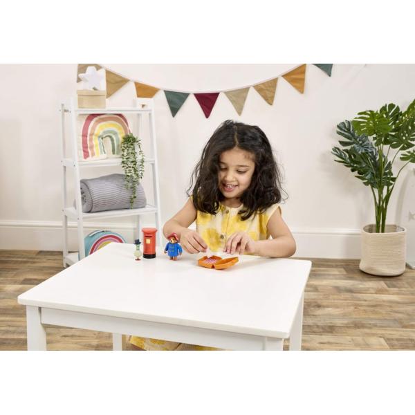 sada obsahuje figurku Paddingtona a jeho kamaráda Pidgeontona, poštovní schránku a kufřík s dopisy