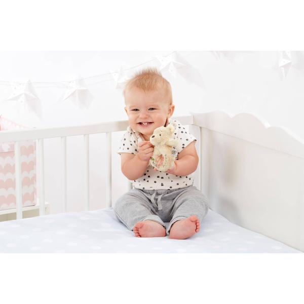 Tato hračka v klasickém stylu obsahuje měkkou hrkálku, která podněcuje dítě k zkoumání smyslů prostřednictvím smyslové hry.