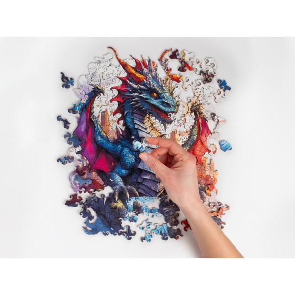 RECENTTOYS Dřevěné puzzle – Drak zaujmou propracovaným fantasy motivem a bohatými detaily, které dělají ze skládání opravdu výjimečný zážitek. Výrazný drak v kombinaci s dynamickými barvami a jemnými vzory působí po složení velmi efektivně.