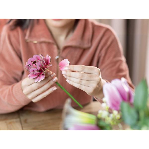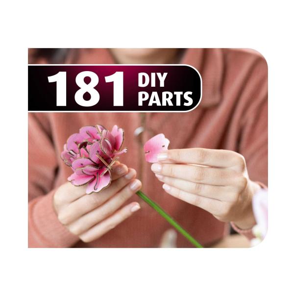 Dřevěná květina ke složení. Velikost: 27 cm. Balení obsahuje 181 dílků.