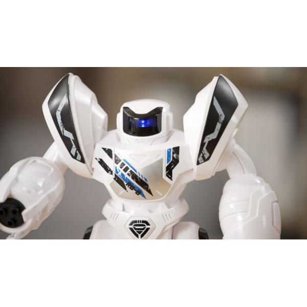 Diaľkovo ovládaný robot, který střílí náboje a dá se naprogramovat na 20 akcí, velikost 30 cm. Vše doprovázejí zvukové a světelné efekty (LED tvář).