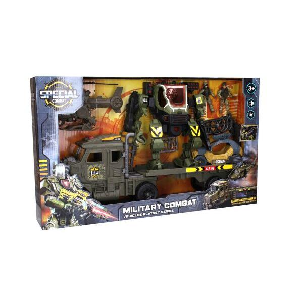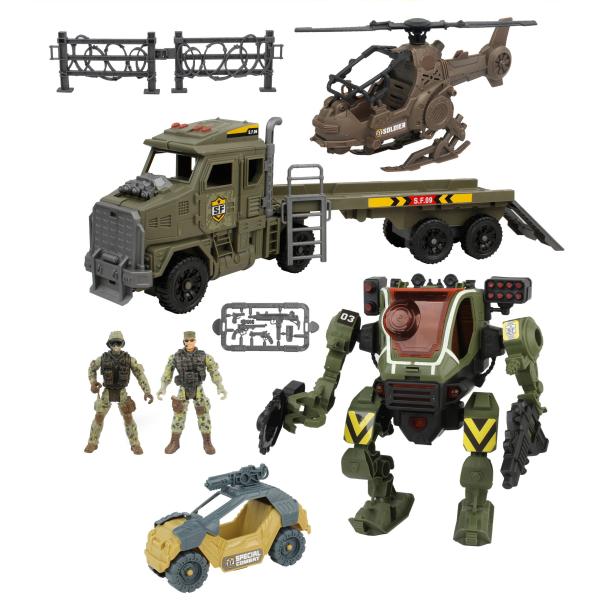 Robot Mecha s efekty – set s tahačem a helikoptérou nabízí dětem napínavou vojenskou hru plnou akce a dobrodružství. Robot vydává světelné a zvukové efekty, které oživují hru a rozvíjejí představivost.
