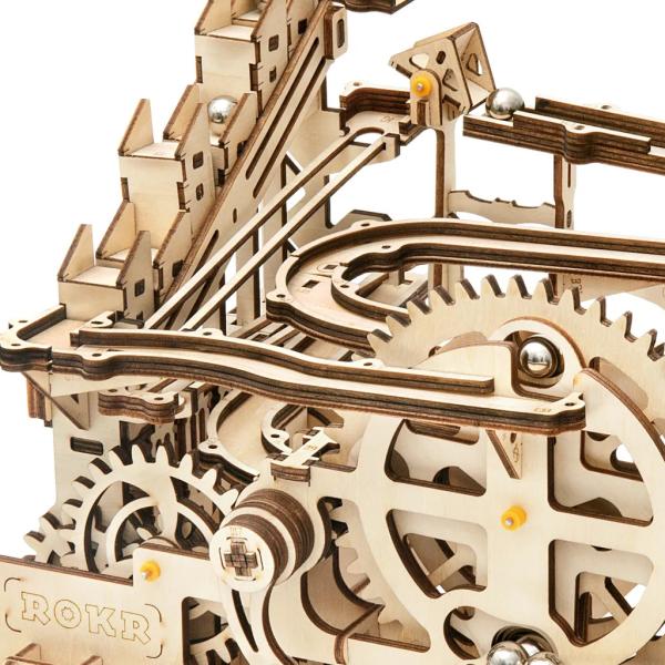 Kuličková dráha se schodišťovým výtahem a velkou spirálou. Skládačky kuličkových drah RoboTime nabízejí jinde nevídané detaily a variabilitu. Každá se může pyšnit originálními funkčními detaily a rozmanitými překážkami, které často nápaditě změní dráhu kuličky a přinášejí tak výjimečnou zábavu. Mechanika je poháněna ručním pohonem, otáčením kliky, kterými jsou také vynášeny a na cestu pravidelně spouštěny kuličky.