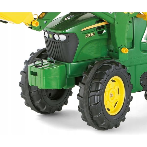 Otevírací kapota přidává realistický herní prvek. Tichá kola umožňují jízdu bez rušivého hluku. Vestavěný mechanický systém je pro dítě zcela nedostupný, což zaručuje maximální bezpečnost během hry. Nastavitelné sedadlo zajišťuje, že traktor roste spolu s dítětem. Součástí balení je lopata s automatickým zámkem, která rozšiřuje možnosti hry o další farmářské scénáře.