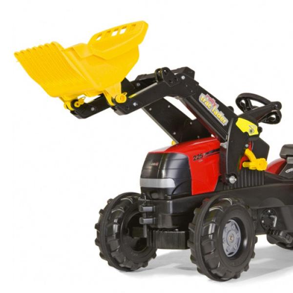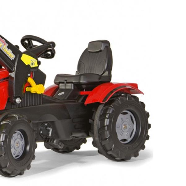 Červeno-černý šlapací traktor Farmtrac Case Puma CVX 240 s předním nakladačem je vyroben z kvalitního a odolného materiálu a disponuje mnoha propracovanými detaily. Přední nakladač je vybaven bezpečnostní pojistkou pro hladký převoz nákladu.