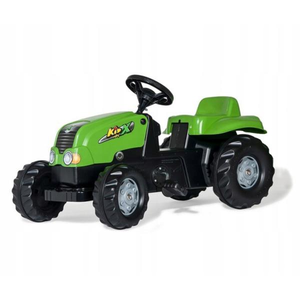 Zelený šlapací traktor je precizně zpracován do nejmenšího detailu a vyroben z kvalitního a odolného plastu. Součástí balení je připojitelný přívěs, na který lze naložit náklad a zpestřit tak hru o další farmářské scénáře.