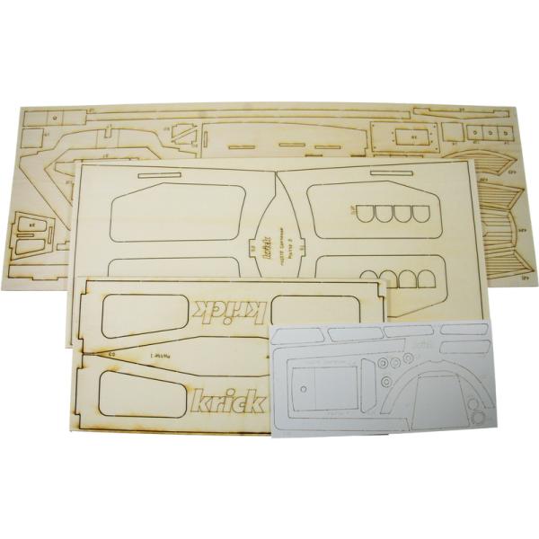 Po otevření víka krabice naleznete výlisek trupu a nástaveb, sadu překližkových dílů, sadu stožáru a ráhna, plachty, sáčky s montážním příslušenstvím, sadu výkresů a manuál.