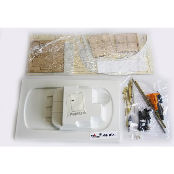 Charakteristika:Stavebnice RC modelu lodi od firmy ROMARIN, Motorová jachta Florida kit, je replikou moderního sportovního člunu který dosahuje velkých rychlostí a zároveň poskytuje komfort velké luxusní jachty. Model Florida lze velmi rychle sestavit pomocí předem vytvarovaných laserem řezaných ABS dílů.