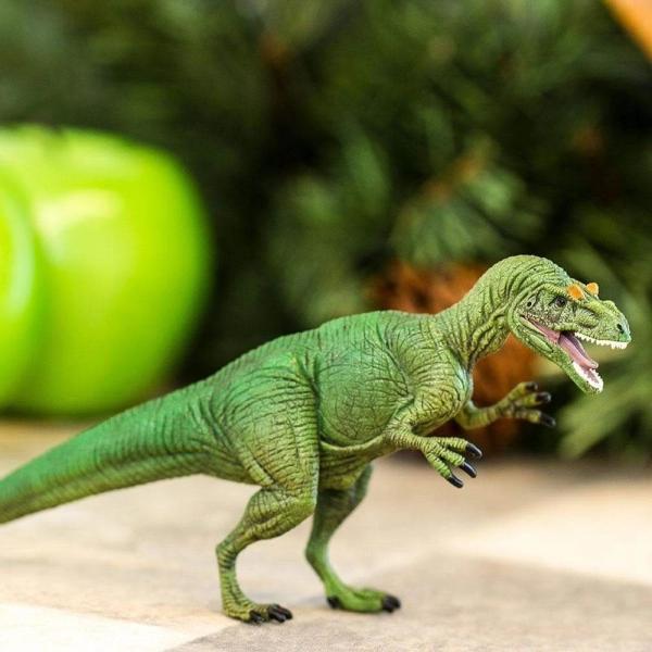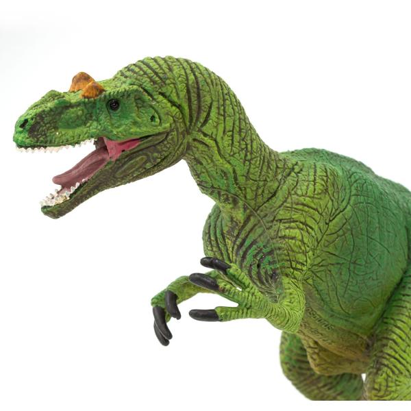 Charakteristika: Allosaurus byl svalnatý masožravec s velkými čelistmi plnými ostrých, zahnutých zubů. Měl nízký trojúhelníkový výčnělek nad každým okem, což naše figurka Allosaura přesně odráží. Chodil na dvou dlouhých nohách s trojprstými chodidly a ostrými zahnutými drápy. Měl krátké paže s trojprstými rukama a dlouhý ocas sloužící k udržení rovnováhy. Největší Allosaurus dosahoval délky 32 stop (přibližně 9,8 metru), což je velikost mikrobusu.
