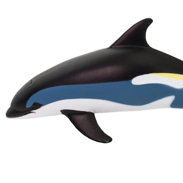 Vědecký název:Lagenorhynchus acutusCharakteristiky: Tato elegantní figurka delfína je aerodynamická a připravená rychle proletět vodou, přičemž po cestě předvádí zábavné akrobatické skoky! Tato přesná postava je velmi detailní rekonstrukcí tohoto delfína s krátkým zobákem.Velikost a barva: Tato delfíní hračka měří 4 3/4 palce na délku a něco přes 2 palce na výšku po špičku hřbetní ploutve. Je velká asi jako zvýrazňovač. Jeho zbarvení je černé zhora, s modrošedými na bocích a bílou na spodní straně. Na obou stranách těla se nachází velká žluto-bílá skvrna.Atlantický běloboký delfín je součástí kolekce Wild Safari® Sea Life.Všechny naše produkty jsou netoxické a bez BPA.UPOZORNĚNÍ: Nevhodné pro děti do 3 let. Obsahuje malé části. Riziko udušení.