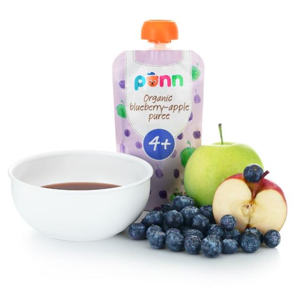 SALVEST Ponn BIO Jablko s borůvkami (100 g) Ovocný příkrm pro kojence od ukončeného 4. měsíce. Kapsička s praktickým uzávěrem obsahuje jen 90% jablečné pyré vyrobeného z bio jablek a 10% bio borůvkové pyré. Není do ní přidáván žádný další cukr, umělá barviva, aroma ani konzervanty. Výrobek je tepelně opracován a jeho trvanlivost zajišťuje šetrná sterilizace. Ovocný příkrm byl vyvinut ve spolupráci s pediatry. Nechte vaše maličké vychutnat si jedinečnou kombinaci jablíček a vyzrálých borůvek! Návod na přípravu: Výrobek je připraven k použití. Obsah kapsičky je vhodné podávat dětem malou lžičkou. Začněte jednou až dvěma čajovými lžičkami denně a množství postupně zvyšujte. Kapsička není určena k ohřevu v mikrovlnné troubě. Složení: Bio jablečné pyré (90%) a bio borůvkové pyré (10%). Bez lepku. Nutriční hodnota na 100 g: Energie 208 kJ / 49 kcal; tuk 0 g; nasycené mastné kyseliny 0 g; sacharidy 11 g, z toho cukry 11 g; bílkoviny 0 g, sůl 0 g. Bez přídavku cukrů. Obsahuje pouze přírodní cukry. Potravina pro zvláštní výživové účely. Skladování: Neotevřený výrobek se skladuje při běžné pokojové teplotě. Otevřenou kapsičku znovu uzavřete a skladujte v chladničce po dobu maximálně 24 hodin. Minimální trvanlivost je uvedena na obalu.