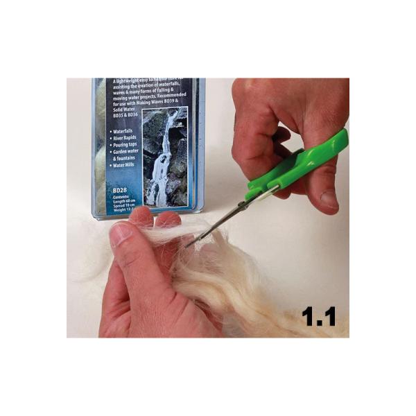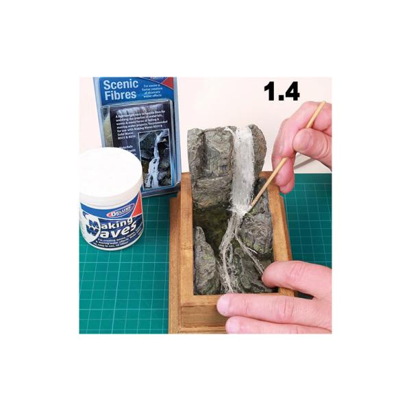Charakteristika:Scénické vlákna pro vytvoření základny pro realističtější vodopády, tekoucí vodu, tekoucí řeky a vodní kaskády pro modelovou železnici a dioramata. Použijte v kombinavi s Making Waves (položka DM-BD39) a Scénickou vodou (položka DM-DM-BD35).