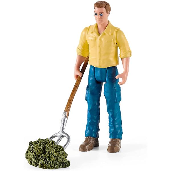 Sada obsahuje: 1× zemědělec, 1× kráva, 1× telátko, 1× vidle, 1× seno, 5× vrbový plot, 1× brána, 1× kartáč na krávy, 1× úchytka na kartáč na krávy, 1× tyč, 1× deska s otočným talířem, 1× hadice, 1× pumpa s funkcí stříkání. Figurky Schleich jsou mimořádně detailní, láskyplně malované a umožňují dětem hrát si a zároveň se učit.