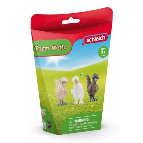 Chaos ve stodole! Tři slepičí kamarádi z kolekce Schleich® FARM WORLD ti na farmě udělají pořádný nepořádek. Ať už jde o krádež něčeho ze sklizně, pomalování spícího kohouta nebo promíchání tvých barevných pastelek, tyto tři opeřené kamarádky vždycky něco provedou. A jako sehranému týmu jim to většinou přejde. A tak se smějí, čechrají si peří a tančí po louce. Díky jejich různě zbarvenému peří je však vždy rozeznáš. Dokážeš zjistit, která z nich je největší obtíž? Rozměry: 19,2 x 13,6 x 5,8 cm Věk: 3+