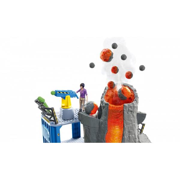 Výzkumnice Yuki z velké sopečné expedice ze Schleich® Dinosaurs sbírá do svého výzkumného kontejneru vše, co se týká dinosaurů. Najednou slyší rachot: celá hora vibruje a stoupá kouř. Reaguje bleskově a skáče na svoji únikovou skluzavku, která ji doveze do tajné jeskyně pod sopkou. Stihla to jen tak, protože sopka právě vybuchuje. Díky této funkci mohou být z kráteru sopky katapultovány kameny. Sopka navíc vibruje a stoupá z něj kouř. Funkce světla LED, která je integrována v proudu lávy iv některých kamenech, se postará o napínavou atmosféru při hraní. Na akčnosti dodává celé situaci dráha s překážkami na zadní straně sopky. Zlatým hřebíkem velké sopečné expedice jsou dva dinosauři, kteří jsou v sadě obsaženi s exkluzivní speciální malbou. Figurky Schleich jsou mimořádně detailní, láskyplně malované a umožňují dětem hrát si a zároveň se učit. Sada obsahuje: 1x výzkumnice dinosaurů Yuki, 1x gigantosaurus, 1x ankylosaurus, 1x sopka, 1x kontejner, 1x zábradlí ke kontejneru, 1x zábradlí k mostu, 1x most, 1x vrchní část zábradlí, 1x vrchní část zábradlí kulička, 2x kámen velký, 3x kámen střední, 4x kámen malý, 2x křišťál velký, 2x křišťál malý, 1x liána, 2x rostlina velká, 3x rostlina malá, 1x stalaktity. Baterie 3x AA nejsou součástí balení. Nevhodné pro děti do 3 let. Doporučený věk: 4-10