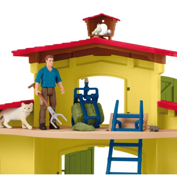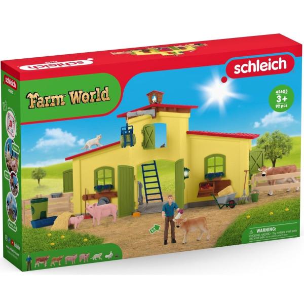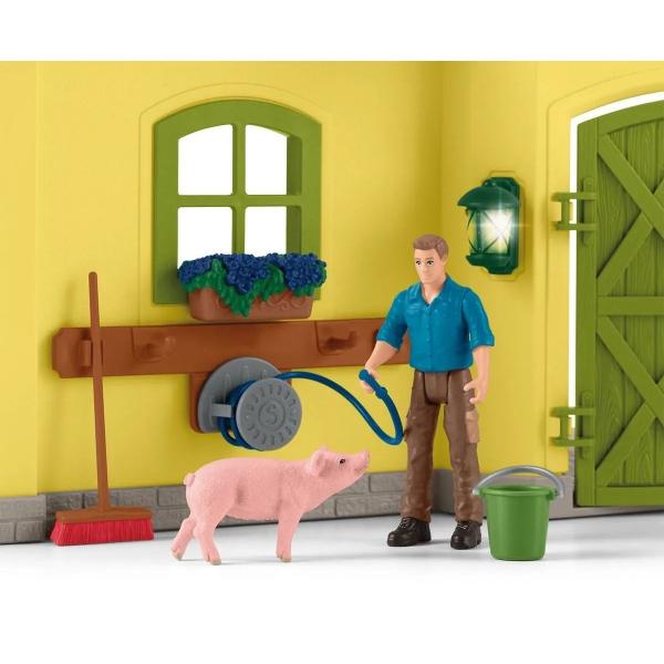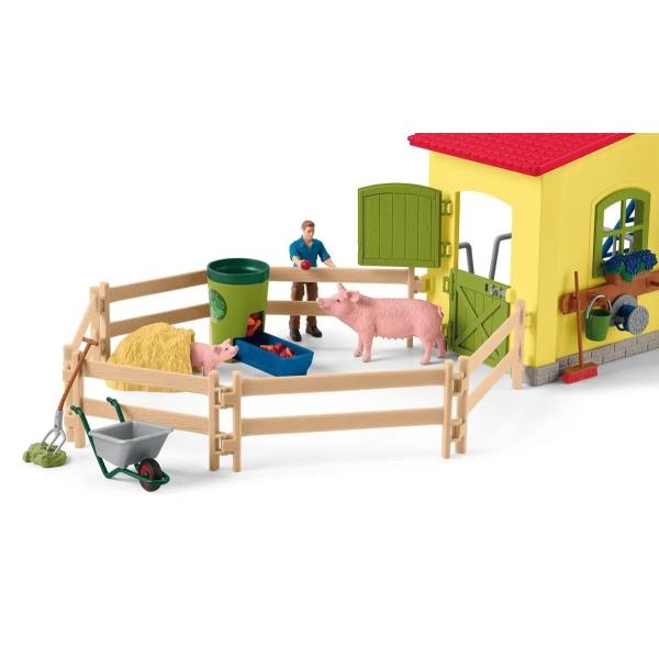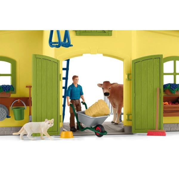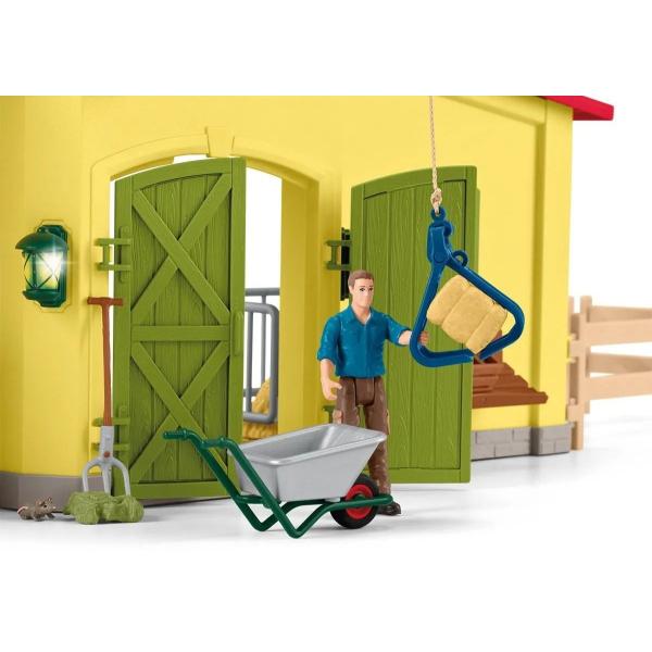 Stáj schleich®, vybavený mnoha funkcemi a doplňky, nabízí dokonalý domov pro všechna hospodářská zvířata. Všechny figurky schleich® jsou navrženy věrně do nejmenších detailů, s láskou namalovány a zaručují výchovně hodnotnou hru. Otočný krmný kolotoč šetří farmáři Paulovi drahocenný čas při krmení. Farmář Paul používá naviják k dopravě čerstvého sena do seníku k uskladnění. Rozměry: 56,5×37,5×10,5cm. Věk: 3+