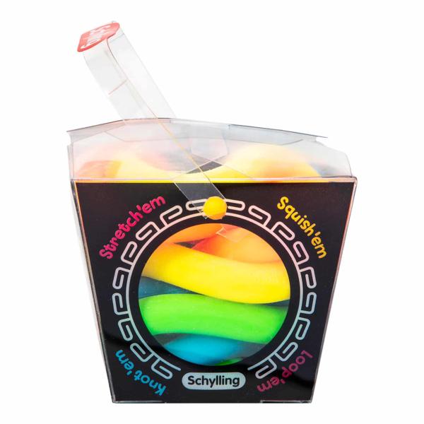 Stretchovací nudle naplňují zábavu při hraní si s jídlem…bez nepořádku. Můžete je mačkat, natahovat, uzlovat tak, jak se Vám líbí. Nudle jsou jasně zbarvené v 5 fluorescenčních tónech a nabízejí jedinečný zážitek ze smyslové hry, který vytváří spoustu nekonečné zábavy.