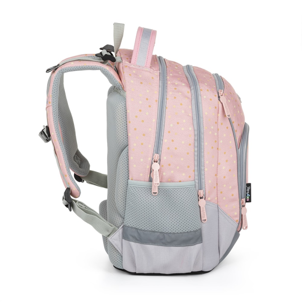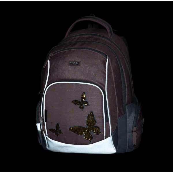 Školní batoh OXY GO Motýl – perfektní kombinace stylového designu a praktických funkcí pro vaše dítě. Vlastní nastavitelné ramenní popruhy, dvě vnitřní kapsy a dvě větší kapsy na stranách.