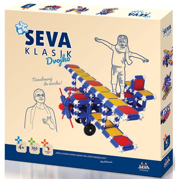 -2%Stavebnice SEVA KLASIK – dvojka obsahuje 366 dílů. SEVA KLASIK – Dvojka je určena pro děti od 4 let. V balení jsou také kovové hřídelky, díky kterým se bude třeba otáčet radar nebo kolotoč. „KLASIKA…
