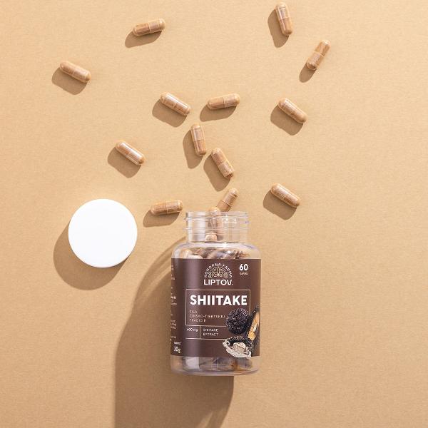 Složení: extrakt z houby shiitake (Lentinula edodes), vegetariánská kapsle (hydroxypropylmetylcelulóza)