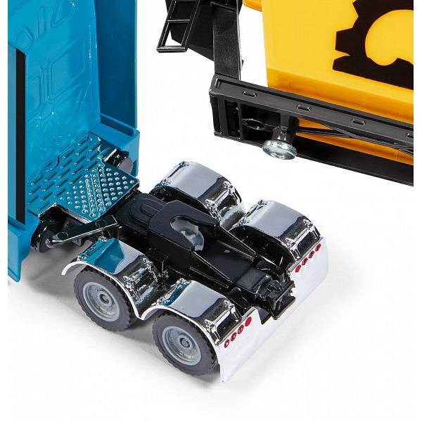 S touto těžkou váhou Daimler ukazuje, kdo je šéf: Freightliner, vyrobený pro americké dálnice, je nejprodávanější značkou nákladních vozů ve své váhové třídě v Americe. Freightliner je totiž extrémně robustní a spolehlivý vůz, který lze používat každý den i v těch nejnáročnějších podmínkách. Nový model Cascadia, masivní americký nákladní vůz s třínápravovým podvozkem, je vlajkovou lodí v sektoru dálkové dopravy a působivou kombinací nejnovějších technologií, efektivity a bezpečnosti. A nezapomnělo se ani na řidiče: V zadní části kabiny řidiče je obrovský prostor na spaní, který na cestě funguje jako pohodlný ostrůvek odpočinku. Lak „Miami Blue“ a chromované prvky obzvláště dobře zvýrazňují poutavý design nákladního vozidla. Kapota se dá otevřít. Model siku je samostatná trakční jednotka, kterou lze díky integrované standardní spojce kombinovat se všemi přívěsy řady siku Super. Rozměry balení: 23,5 x 11,5 x 7,2 cm. Věk: 3+