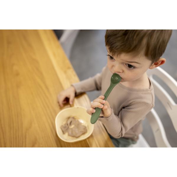 Bezpečná silikonová lžíce pro první příkrmy, vyrobena z 100% potravinářského silikonu a bez BPA, PVC a ftalátů. Ergonomický tvar usnadňuje krmení rodičům i dětem.