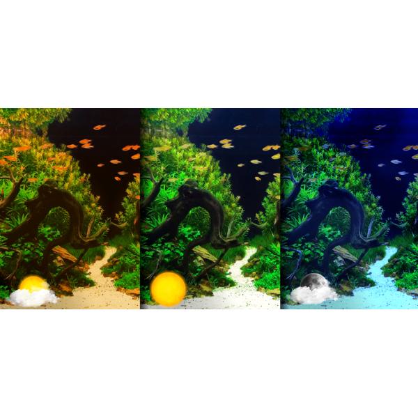 Sinkor Maister kontrolér umožňuje nastavit sílu jednotlivých barev – bílá / červená / modrá / zelená. Tato funkce je velmi důležitá, protože každá rostlina a ryba vynikne pod jinou barvou světla a každému akvaristovi se akvárium líbí pod rozdílnou barevnou kombinací. V kontroléru si dokonce můžete nastavit, aby svítidlo během dne střídalo barevné kombinace, takže například ráno můžete akvárium zabarvit více do teplých/červených barev (východ slunce), přes den budete svítit klasickou bílou denní barvou a v noci nastavíte slabě modrou barvu, která bude simulovat jemný měsíční svit.