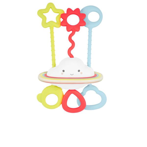 Vyrobeno z měkkého silikonu, který je šetrný k zoubkům, je vyplněno mnoha texturami, nebeskými tvary a při zatahování za úchyty vydává zajímavé zvuky.