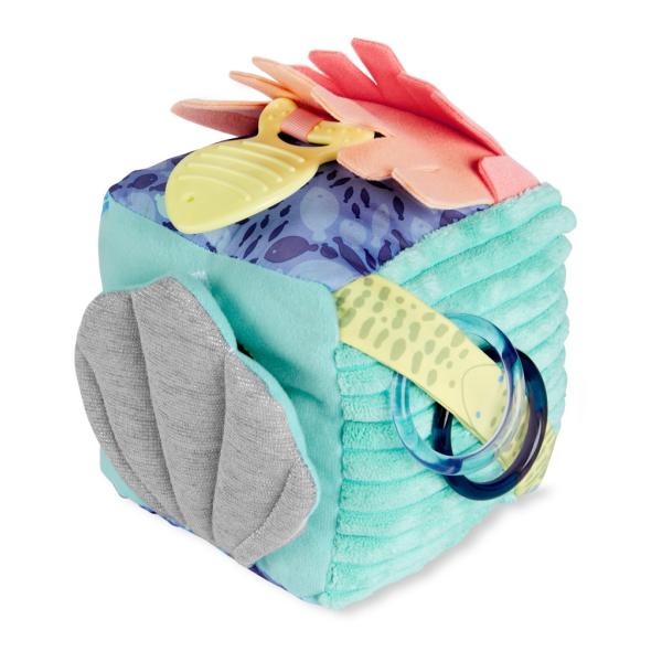 Ponorte se do nekonečné zábavy! Naše měkká kostka aktivit inspirovaná mořem, která je plná různých měkkých textur, zvuků šustění a dalších věcí, které může dítě prozkoumat, podporuje vícerozměrné zkoumání během hry.
