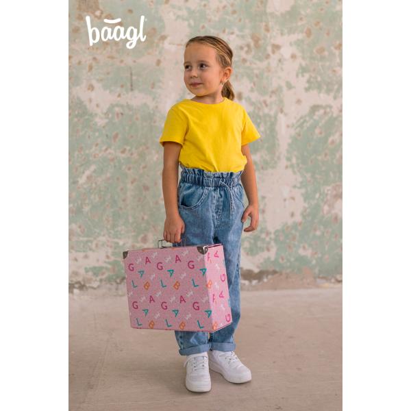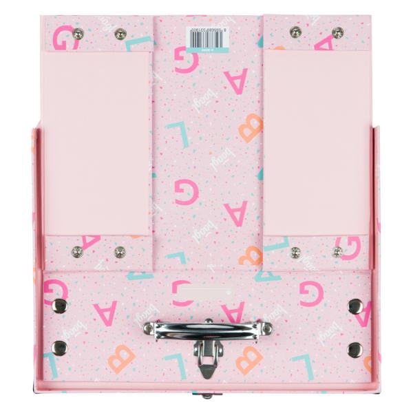 Skládací školní kufr Logo – růžový s kováním