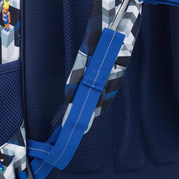 Pozor, Dvoukomorová hitovka pro kluky do 1. – 4. třídy! vhodný i pro drobné prvňáčky lehká konstrukce – neváží ani kilogram! ergonomicky tvarované popruhy a hrudní pásek objemný střih Máme pocit, že tento batoh bude hitovka. Pokud máte doma školáka poblázněného do her typu minecraft, máte s tímto batohem vyhráno! Bude vyhovovat všem klukům, ale například i dívkám od 1. do 4. třídy ZŠ. Jak se vám líbí? Všichni rodiče jistě ocení lehkou váhu tašky. Váží pouhých 0,86 kg, a to hlavně díky lehké lisované zádové části. Školáci si ale nejvíc oblíbí zřejmě design. A co až objeví dva přívěsky na přední kapse! Lisovaná zádová část tašky je anatomicky tvarována. Spolu s ergonomicky tvarovanými hrudními popruhy, které lze utáhnout v horní i spodní části, zajistí správné nošení na zádech školáka i při denním nákladu několika kilo učení. Navíc jsme do konců popruhů všili magnet, díky kterému je můžete upevnit k tělu popruhu tak, aby volně nevali kolem těla školáka. Výškově nastavitelný hrudní pásek pak zaručí, že ramenní popruhy nebudou sklouzávat ze zad ani drobnému prvňáčku. Zadní komora tašky je nejširší a tím pádem i nejobjemnější. K zádům doporučujeme dávat co nejtěžší náklad – těžké učebnice nebo třeba desky na sešity. Přední užší komora je určena pro další potřebnosti, nebo například penál PENN 19014 ve stejném designu. V přední komoře je ještě menší síťová kapsa na zip a jmenovka. Na čele batohu pak jistě využijete i hluboké přední kapsy, kde je dobré umístit například krabičku s desátou, nebo všechny další potřebnosti malých školáků. Najdete v ní také karabinku na klíče, díky které budou vždy po ruce. Ani u tohoto modelu tašky jsme nezapomněli na bezpečnost dětí. Reflexní prvky jsou na bocích, čele i ramenních popruzích tašky. Láhev na pití můžete umístit do jedné ze dvou bočních síťových kapes, které jsme letos opatřili látkou ve spodní části, aby se síťovina v těchto namáhaných místech nepřetrhávala. Bonusy: pevné dno z materiálu TOPDURA chráněného nožičkami zátěr proti dešti poutko na přenášení tašky v ruce poutko na zavěšení na lavici Náš tip : Taška má kapsy k pití na obou stranách. Pokud do jedné dáte plnou lahvičku s pitím, snažte se do druhé umístit předmět podobné hmotnosti, aby taška byla správně vyvážená. Spíše ale radíme dětem dávat do lahvičky jen sirup, vodu si dopustí ve škole. Usnadníte tak tašce i zádům dítěte.