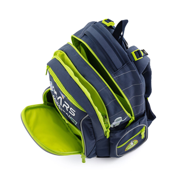 Školní batoh z řady OXY GO na sebe jednoduše strhne pozornost. Designové provedení zaujme každého kluka i dívku. Perfektní tvar batohu ukrývá nejen anatomicky tvarovaná a prodyšná záda, ale také možnost nastavit si ramenní popruhy pro lepší pohodlí a komfortnější nošení. Dvě vnitřní kapsy nabízejí dostatek prostoru pro učebnice, sešity i věci pro volný čas. Pevné dno zabraňuje jak ušpinění zvenčí, tak přetečení čehokoli, co se vylije uvnitř. Po stranách naleznete dvě větší kapsy. Batoh nabízí velkorysé množství nejrůznějších kapes, ať už velkých nebo i malých. Hledání klíčů v batohu proto nehrozí. Lehký, přitom dostatečně velký pro všechny věci, které chce mít každý školák po ruce. Mysleli jsme také na bezpečnost vašich dětí, proto batohu nechybí reflexní prvky. Batoh je ideální na první stupeň 1. – 3. třídu pro děti vysoké od 125 cm. Rozměry batohu: 39 x 28 x 19,5 cm. Objem: 22l. Nízká hmotnost: 950 g.