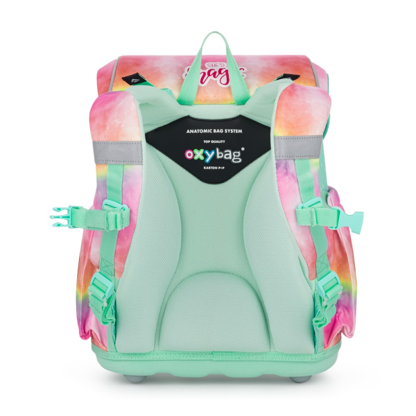 Školní aktovka z řady Premium je anatomicky tvarovaná a zajišťuje tak správné usazení na zádech. Vystužený zadní panel a vnitřní výztuha udržují stálý tvar batohu. Polstrování je z příjemného prodyšného materiálu, široké měkčené popruhy jsou navrženy tak, aby dokonale přilnuly a rovnoměrně zatížily ramena dítěte. Aktovka se skládá z jedné prostorné komory, kam se pohodlně vejdou všechny školní pomůcky pro děti v 1. a 2. třídě. Navíc je opatřena přidanými háčky na uchycení popruhů. Dno batohu je z pevného materiálu, chrání tím obsah před převrhnutím a vysypáním. Zapínání je na bezpečnostní kovovou přezku s reflexní odrazkou. Přední kapsa je určena na svačinu, nechybí řada reflexních prvků, díky nimž je aktovka viditelnější. Délka zadního panelu: 33 cm. Objem: 27 l. Nosnost: 8 kg.