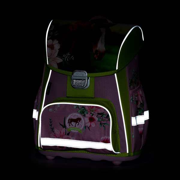 Aktovka: Školní aktovka z řady Premium je anatomicky tvarovaná a zajišťuje tak správné usazení na zádech. Vyztužená záda a vnitřní výztuha udržují stálý tvar batohu. Polstrování je z příjemného prodyšného materiálu, široké měkčené popruhy jsou navrženy tak, aby dokonale přilnuly a rovnoměrně zatížily ramena dítěte. Aktovka se skládá z jedné prostorné komory, kam se pohodlně vejdou všechny školní pomůcky pro děti v 1. a ve 2. třídě. Dno batohu je z pevného materiálu, chrání tím obsah před převrhnutím a vysypáním. Zapínání je na bezpečnostní přezku. Přední kapsa je určena ke svačině, nechybí řada reflexních prvků, díky kterým je aktovka viditelnější. Objem: 28l. Váha: 1,35kg Rozměry: 350 x 310 x 180 mm Nosnost: 8 kg. Kapsa : Školní kapsa na cvičky vyrobená z kvalitního materiálu. Sáček se uzavírá stažením šňůrek. rozměry: 300 x 370 mm Vhodný jak do školy, tak pro sport a další volnočasové aktivity dětí. Penál: Jednopatrový školní penál se dvěma klopami bez náplně. Gumová poutka pro uchycení psacích potřeb. rozměry: 140 x 210 x 45 mm Na vnitřní chlopni je průhledná fólie pro rozvrh hodin.
