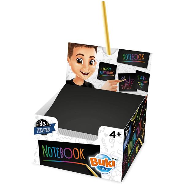 Poznámkový blok obsahuje celkem 150 listů o velikosti 9x9cm. Pomocí přiloženého dřevěného nástroje napište/vyškrabte barevnou zprávu.