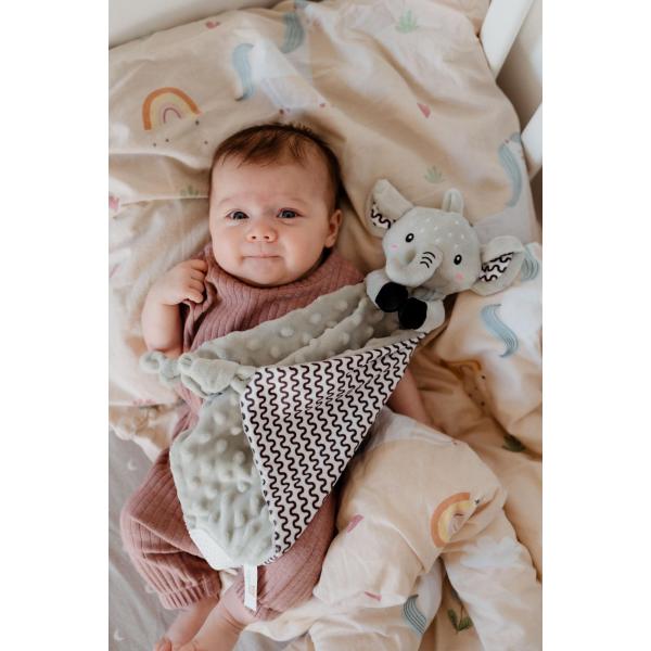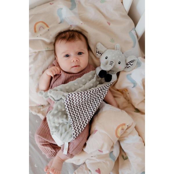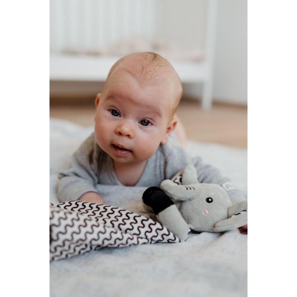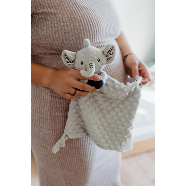 Heboučký plyšový uspávač v podobě milého slona je ideálním společníkem pro miminka už od narození.