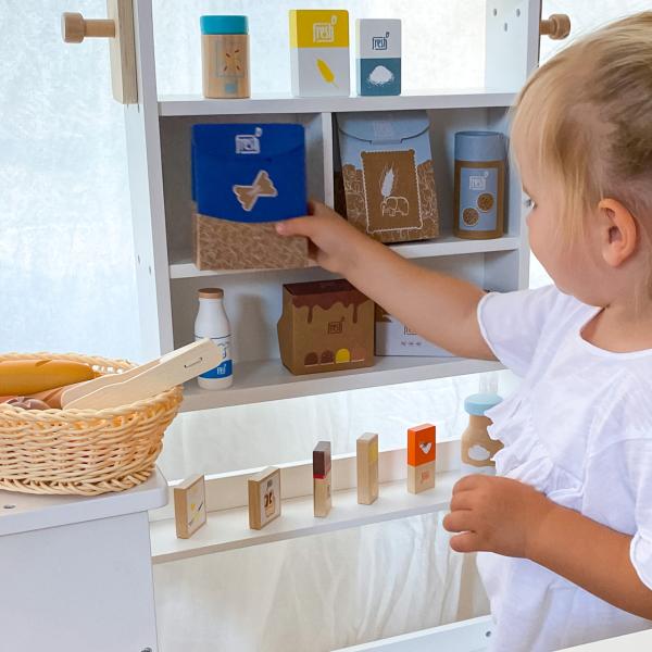 Pro malé mlsouny! Tyto čtyři sladké pralinky s marshmallow uvnitř jsou vyrobeny ze dřeva a budou se perfektně hodit do dětských prodejních stánků a kuchyněk. V balení čtyři varianty, bílá čokoláda, tmavá čokoláda, tmavá čokoláda s posypkou a mléčná čokoláda. Jejich přirozený vzhled děti nadchne stejně jako jejich eko kartonové balení. Pralinky s marshamallow vypadají jako opravdové a dětem poslouží při představivé hře na obchod, piknik, čokoládovnu… V kombinaci s ostatními produkty z řady „Fresh“ si užijí skutečnou zábavu. Hlavní vlastnosti : čtyři čokoládové pralinky ze dřeva, bílá čokoláda, hořká čokoláda, hořká čokoláda s posypkou, mléčná čokoláda, realistický design pro představivou hru, neošetřený karton, ze kterého lze pralinky jednoduše vyjmout, kompatibilní s dalšími produkty z řady „Fresh“ Rozměr krabice : 8x8x4 cm Rozměr pralinky : výška 3,5 cm, O 3,5 cm Materiál : dřevo, karton Obsahuje : 4 ks pralinek Věk : 3+