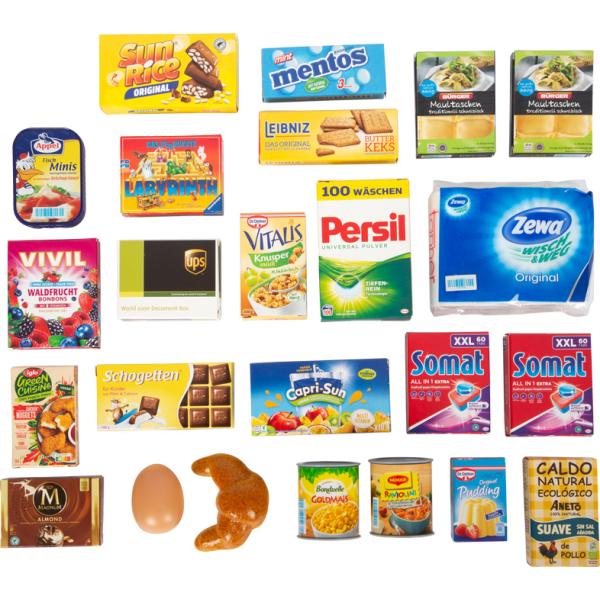 Taková záplava zboží, až oči přecházejí! Malý nákupní košík je až po okraj naplněn rozmanitými plastovými maketami známých výrobků každodenní potřeby. Skvěle doplní některý z naší pestré nabídky obchodů a zpestří nejrůznější hry na prodavače a prodavačky, nebo i pečlivé rodiče. Dovolíte nakonec dětem vzít ho s sebou i do skutečného obchodu? Roztomilý, ale odolný kovový košík je v rozích opatřen robustními plastovými chrániči pro větší bezpečnost. Výběr maket produktů dodávaných s košíkem je proměnlivý. Hlavní vlastnosti: košík naplněný různými maketami skutečných výrobků odolné kovové provedení, opatřené chrániči rozměr: 28x18x12 cm materiál: kov, plast vhodné od 3 let