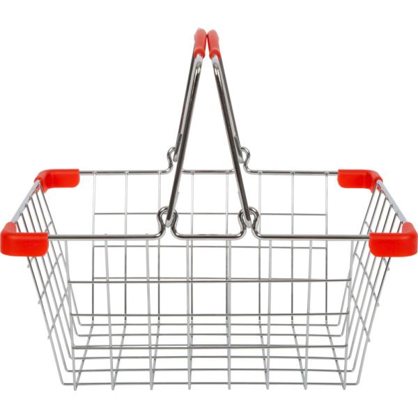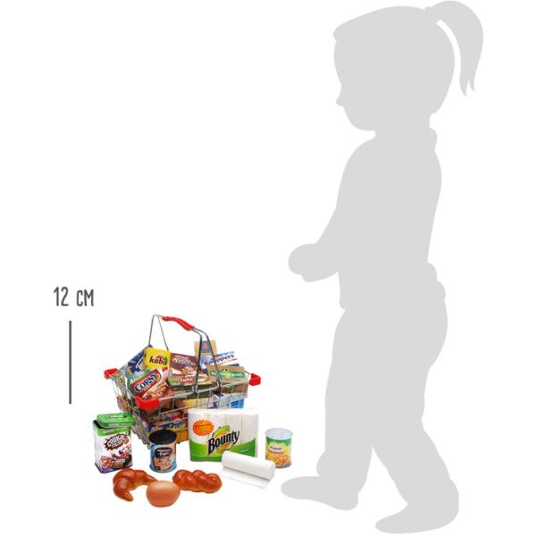Malý nákupní košík Small Foot je ideální pro hry na prodavače a prodavačky. Obsahuje rozmanité plastové makety známých výrobků a je vybaven robustními plastovými chrániči pro větší bezpečnost.