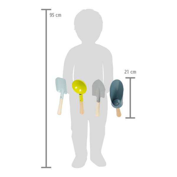 Tato mimořádně praktická sada lopatek v dětských velikostech je ideálním společníkem na výlety na pískoviště nebo na pláž a je také oblíbeným zahradnickým pomocníkem, kdy se malí začínající zahradníci pustí do práce na záhonu. Praktická sada ručních lopatek obsahuje lopatku na smetí, lopatku na uhlí, ruční rýč a lopatku s naběračkou. S jednou lopatkou můžete stavět hrady z písku as tou druhou můžete vytvářet dokonale tvarované kulaté příkopy. Hlavní vlastnosti: 4 druhy lopatek ideální velikost pro děti rozvíjí motoriku a vztah k přírodě vyrobeno z kovu, dřevěná násada