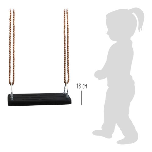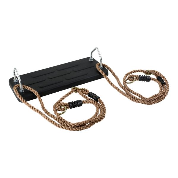 Houpejte se v létě i zimě! Mimořádně pevná a odolná houpačka je určena k celoročnímu využití na zahradě či dětském hřišti. Sedátko je vyrobeno z tuhé gumy, poskytuje tak pevnou oporu a neklouže. Poddajná nylonová lana jsou odolná vůči povětrnostním vlivům a zakončená kovovými kroužky na zavěšení. Jejich délku lze kdykoli snadno upravit pomocí kovových průvlaků. Hlavní vlastnosti: jednoduché nastavení délky, nosnost 100 kg, odolné provedení. Věk: 3+