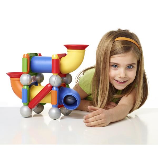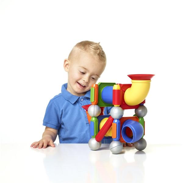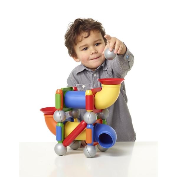 Přitahování a odpuzování magnetů je okouzlí na cestě za poznáním. Starší děti mohou budovat věže, mosty a další super velké stavby. Jednotlivé magnetické díly se jednoduše spojují jedním klepnutím. Všechny díly lze kombinovat se všemi stavebnicemi SmartMax. Tato sada obsahuje 2 dlouhé tyče, 8 středně dlouhých tyček, 3 zakřivené trubky, 2 rovné trubky, 2 nálevky, 9 kovových kuliček a 4 panely s otvory. Tato magnetická stavebnice představuje ideální hračku pro malé děti od 3 let.