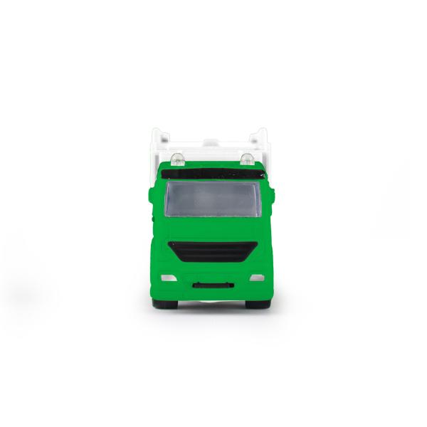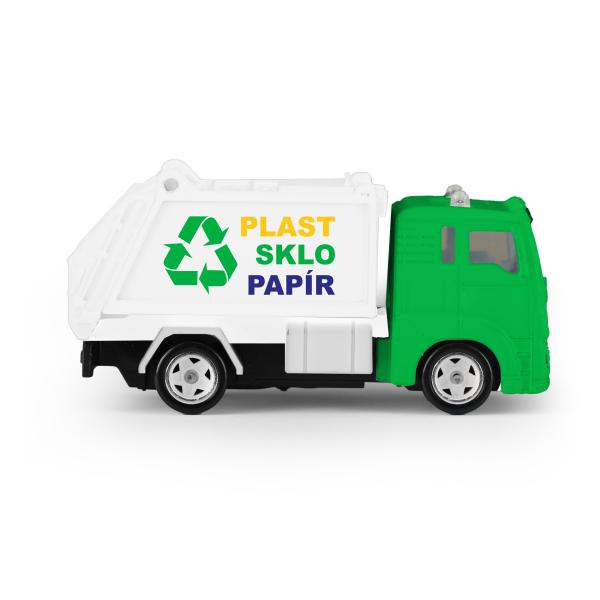 Kovový popelářský vůz s plastovou korbou. Korba má v zadní části odklápěcí dveře. Autíčko jezdí na volný chod a jeho délka je cca 7 cm a určitě potěší malé i velké sběratele.