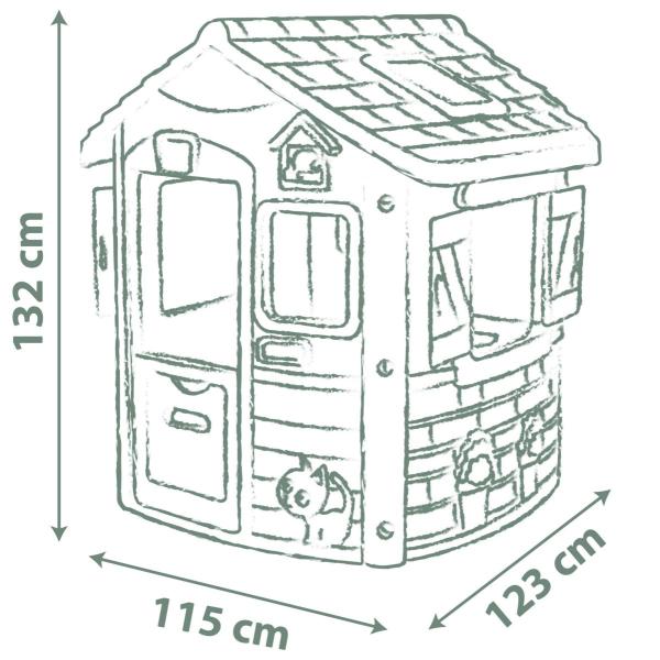 Stabilní, prostorný domeček Smoby Life Jura Lodge. S dvěma vstupními dveřmi (vpředu/vzadu), 2 okny s okenicemi a jedním krmítkem pro ptáčky. Jednoduchá montáž. Domeček je vyroben z vysoce kvalitního plastu odolného vůči UV záření a je obzvlášť odolný vůči povětrnostním vlivům a vyblednutí. Tento výrobek obsahuje minimálně 54 % recyklovaného materiálu a je 100 % recyklovatelný. Tento dům byl speciálně navržen tak, aby bylo možné přidat příslušenství podle vlastního výběru: letní kuchyň, piknikový stůl, slunečník a další. Rozměry výrobku (DxŠxV): 115 x 123 x 132 cm.
