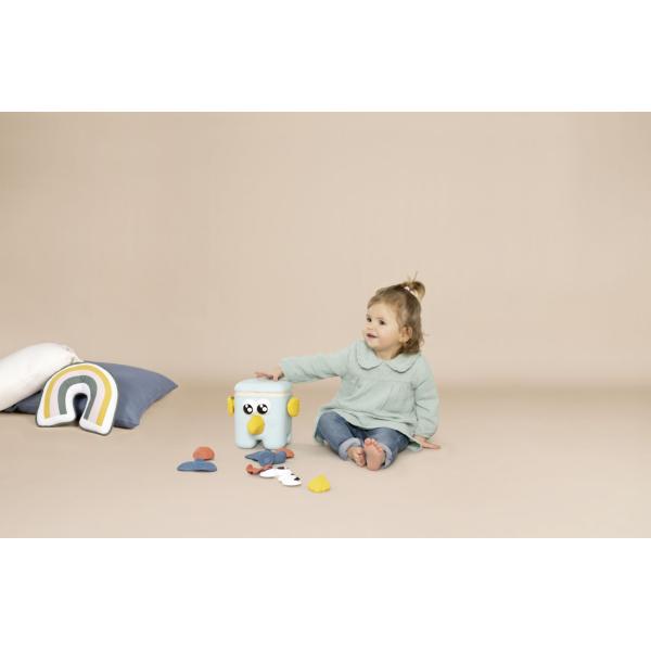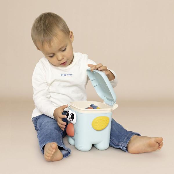 Tato hračka podporuje jemnou motoriku, koordinaci a objevování různých částí tváří zvířat. Po sestavení stačí stlačit hlavu a všechny připevněné části spadnou.