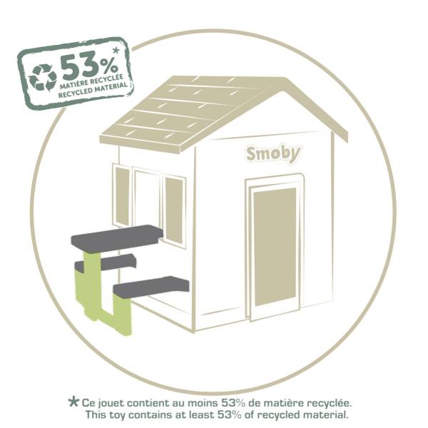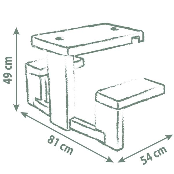 Piknikový stoleček se 2 lavičkami pro děti jako doplněk pro domeček Neo Jura Lodge, My New House, Chef House a Evo Friends House. Anti-UV úprava zaručuje dobrou odolnost a trvanlivost barev. Výška stolečku 49 cm. …