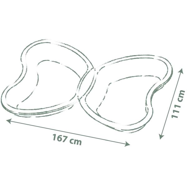 Rozměry rozloženého pískoviště (DxŠxV): 167 x 111 x 18 cm.