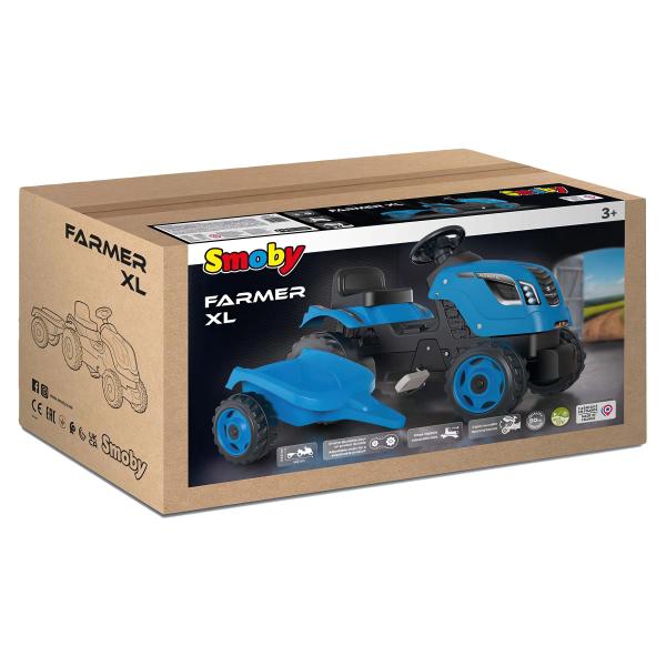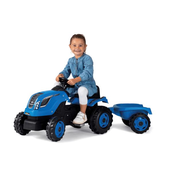 Šlapací traktor Smoby Farmer XL modrý s vozíkem – ideální hračka pro děti od 3 let, která rozvíjí motoriku a kreativitu. Kvalitní plast, nastavitelné sedátko a houkačka na volantu.