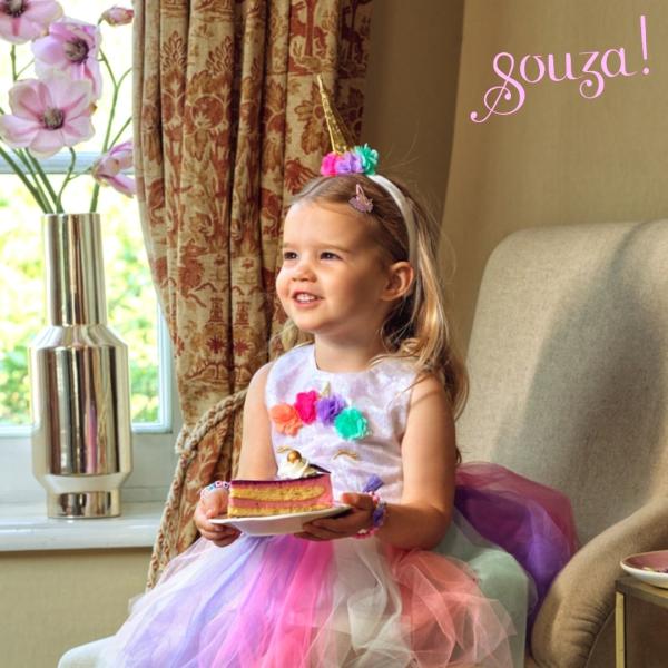 Čarovné šaty s motivem jednorožce jsou navrženy speciálně pro dvouleté děti, mají velikost 92 cm a jsou ideální pro první převlékací dobrodružství plné fantazie a radosti. Vrchní část šatů zdobí výšivka jednorožce s třpytivým rohem a barevnými květinami. Sukýnka je z vrstveného tylu v pastelových barvách duhy, růžové, fialové i tyrkysové. Díky měkkým materiálům jsou šaty nejen okouzlující, ale také velmi pohodlné na nošení.